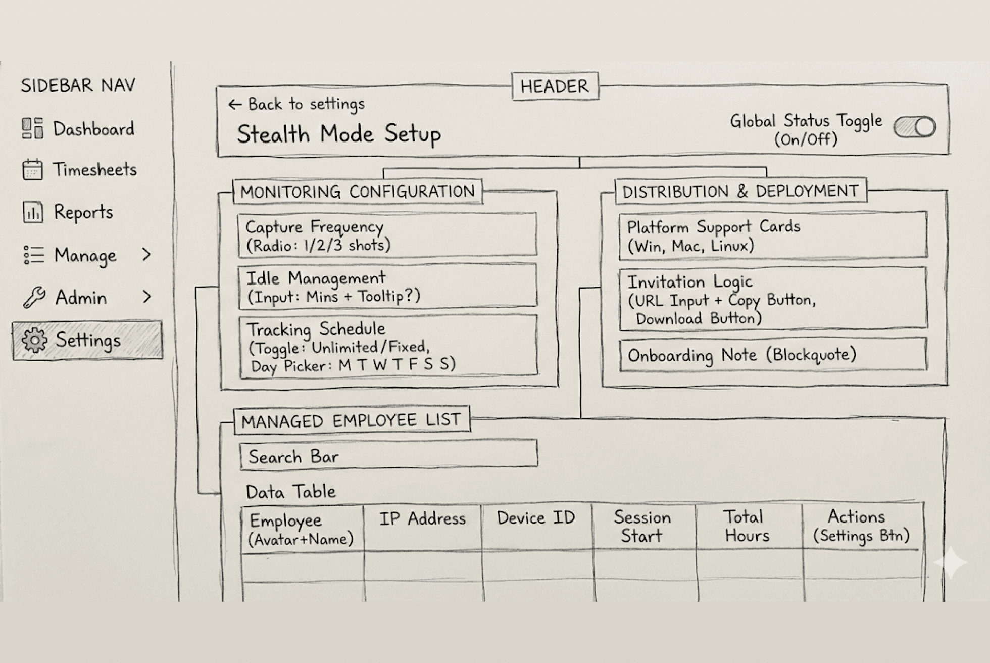 Competitive Parity: By analyzing industry leaders like Hubstaff and Insightful, we identified these features as essential for any enterprise-ready workforce platform.