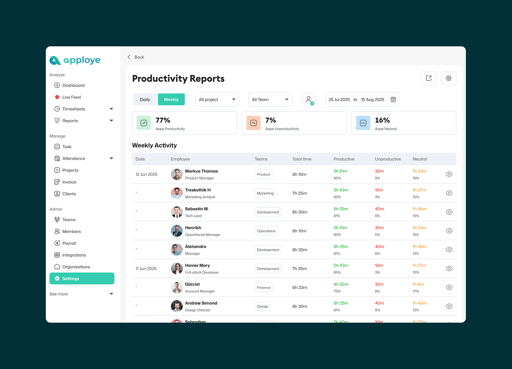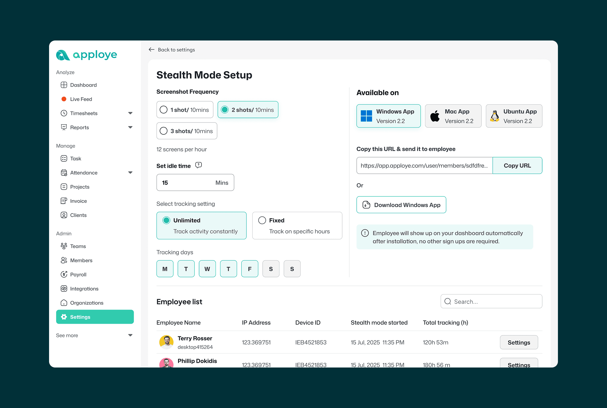 Apploye Webapp: Designing for Stealth Productivity & Smarter Insights